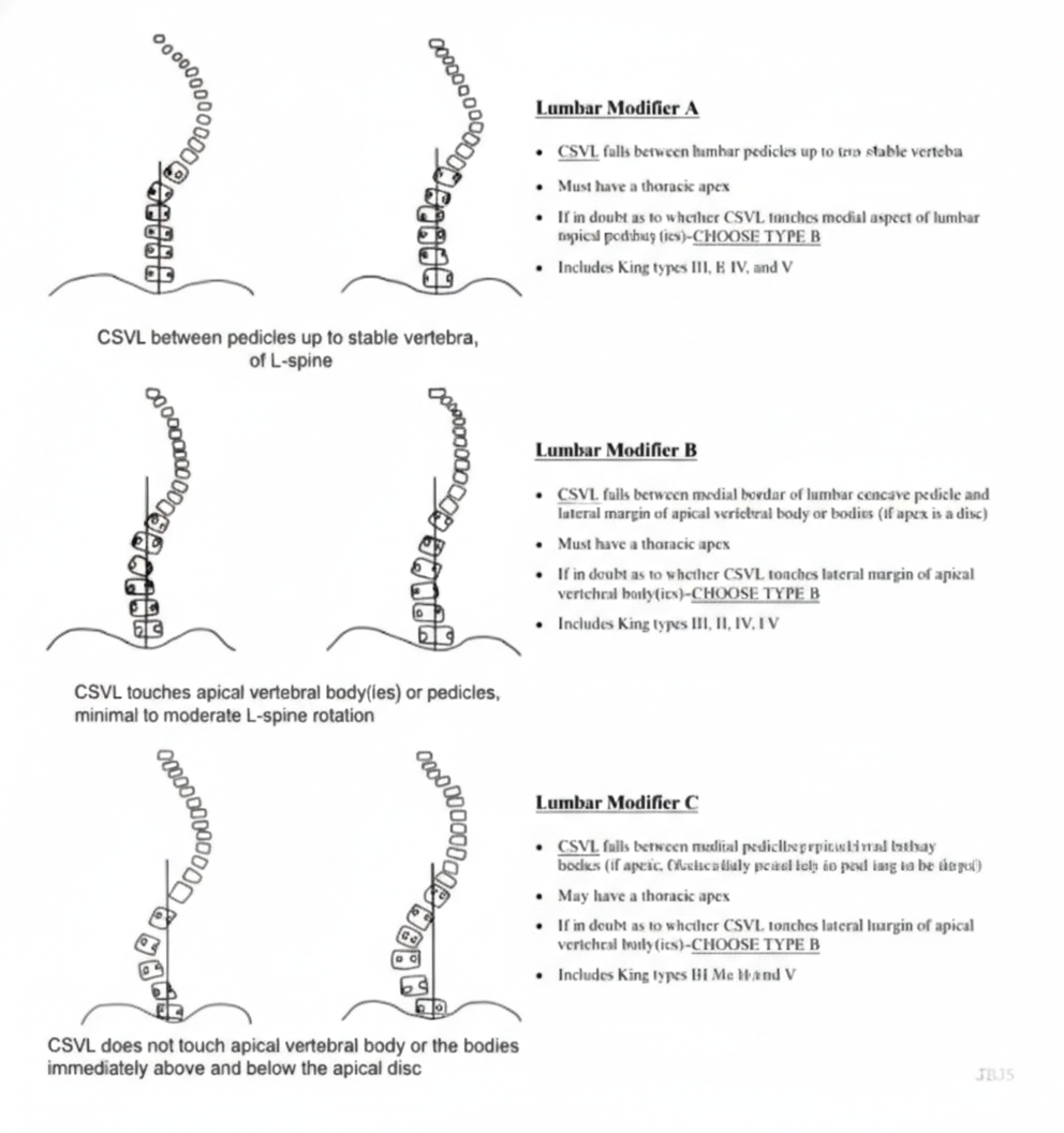 Adapted from: Moore DW. King Classification of AIS. 5 Oct 2016. (Accessed 29 Dec 2025). https://www.orthobullets.com/spine/2075/king-classification-of-ais