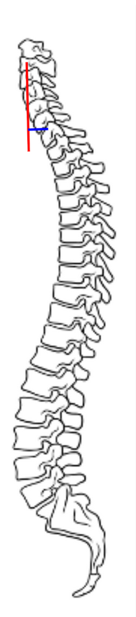 Measure the horizontal distance (in millimeters) between this vertical line and the posterior–superior corner of C7.