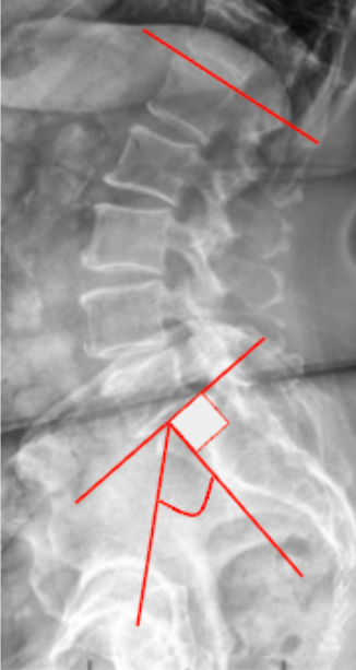 Measure the angle between these two lines—this is the Lumbar Lordosis (LL).