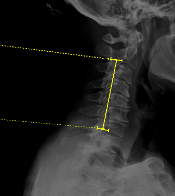 · Obtain a neutral, standing lateral cervical spine X-ray with adequate visualization from C2 to C7